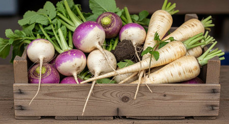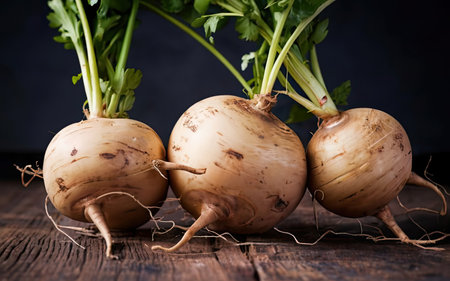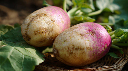 Fresh Turnips with Greenery: A Vibrant and Healthy Vegetarian Food Display