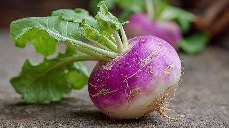 Fresh Organic Turnips with Vibrant Purple and White Skin Detail Displayed