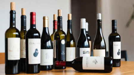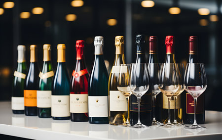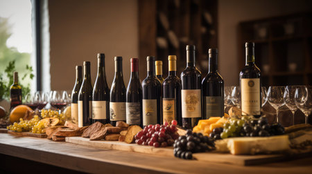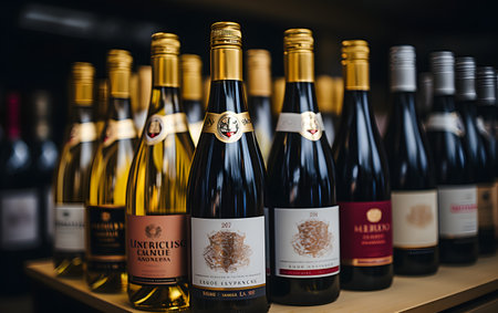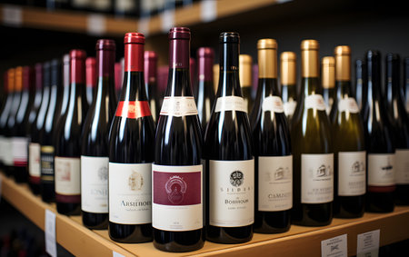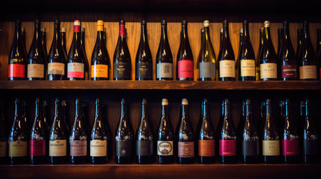 Stimulant showcase displays various bottles of wine., generative AI
