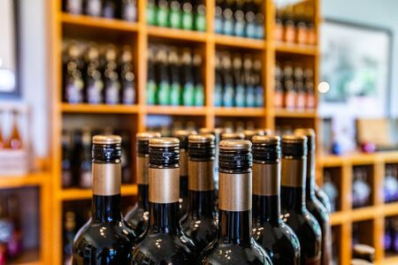 Wine bottles in a wine store. Shallow depth of field.