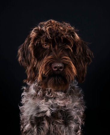 Wirehaired Pointing Griffon in front of black background