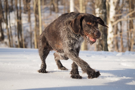 German hunting dog. German Drathar in winter outdoors in the forest or in the park. high quality photo