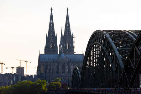 Silhouette of Cologne Cathedral and Hohenzollern Bridge - CITY OF COLOGNE, GERMANY - JUNE 25, 2021
