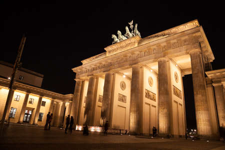 Brandenburg gate, Berlin, Germany at night. Road side view