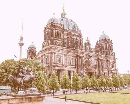 BERLIN, GERMANY - MAY 09, 2014: Tourists visiting the Berliner Dom cathedral church in Berlin Germany vintage
