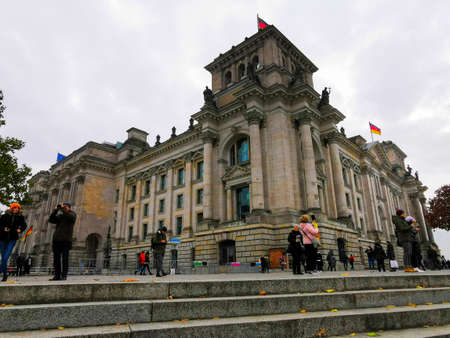 BERLIN, GERMANY - SEPTEMBER 17 : German people and foreign travelers travel visit in Dem deutschen Volke or Reichstag National Imperial Diet Building at Berlin on September 17, 2019 in Berlin, Germany