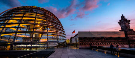Germany, Berlin - April, 21, 2017: Roof of the Reichstag and the flag of Germany in Berlin in 2017