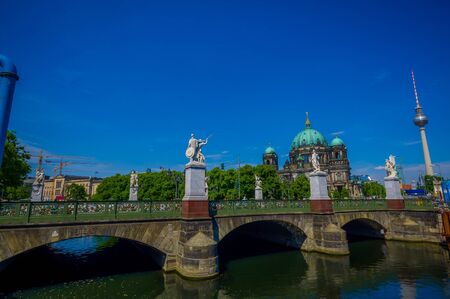 BERLIN, GERMANY - JUNE 06, 2015: Cathedral view at the bottom in a nice sunny day, castle bridge on Berlin.