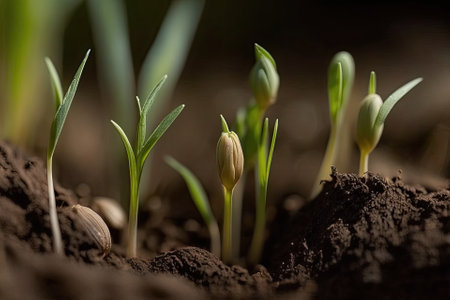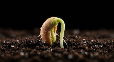 A sprouting seedling emerges from the earths embrace, promising new life and growth in every direction