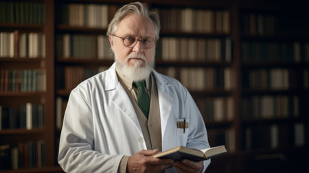 An AI-generated illustration of a male doctor with glasses looking at the camera