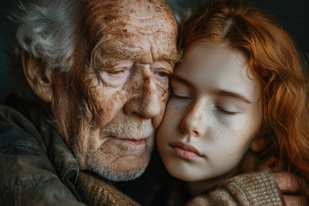Portrait of an elderly man and a child. Close-up