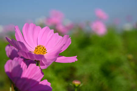 Pink cosmos in the green fields