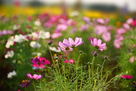 Cosmos garden with many colorful, cosmos flowers