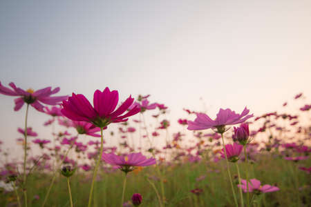 Pink cosmos flowers in the garden bloom gently in summer the sunset