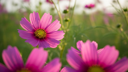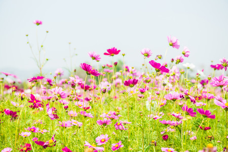 flowers cosmos in the filed morning time