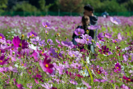 Cosmos flower field in Chiangmai province, Japan.