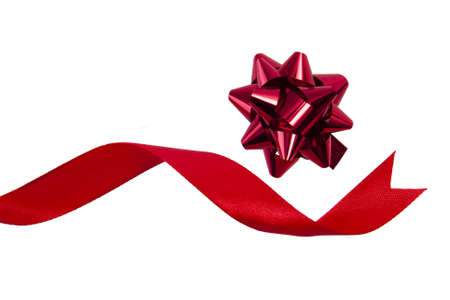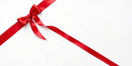 A beautiful red ribbon tied into a bow on a plain white background creating a lovely presentation for a gift or special occasion