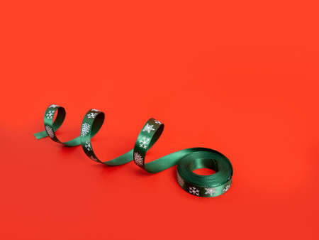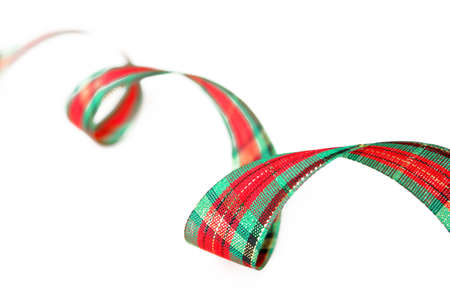 Ribbon with Christmas colors isolated on a white background. Used shallow depth of field and selective focus.