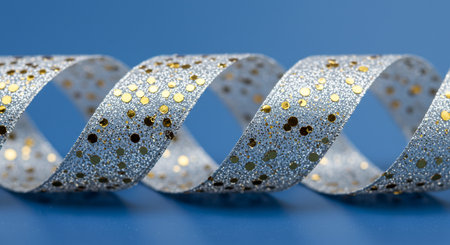 This image features vibrant iridescent ribbons gracefully twisting and flowing against a soft background, creating a festive and elegant atmosphere.