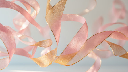 AI Generated. Abstract pink and gold intertwined ribbons on a light background