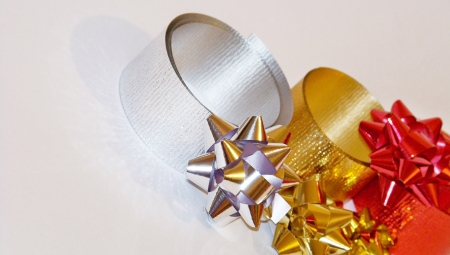 Close-up of various gift ribbons with a focus on texture and color variations, great for detail-oriented themes,