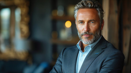 Confident Fifty-Year-Old Businessman with Gray Hair in Professional Suit, Exuding Experience