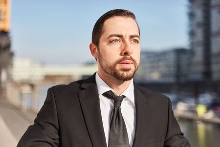 successful man in businesslike suit. manager executive outside the office. male formal fashion