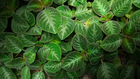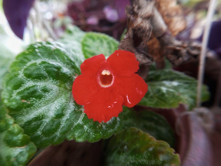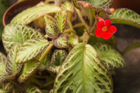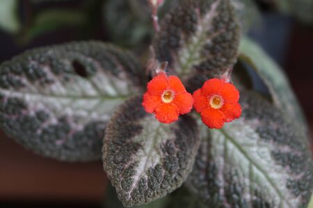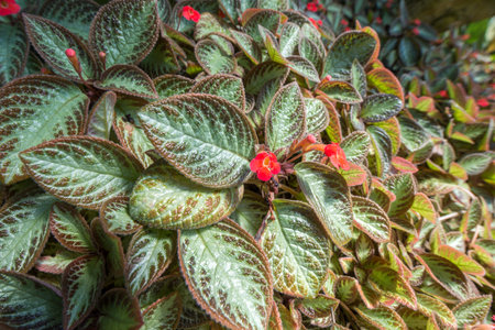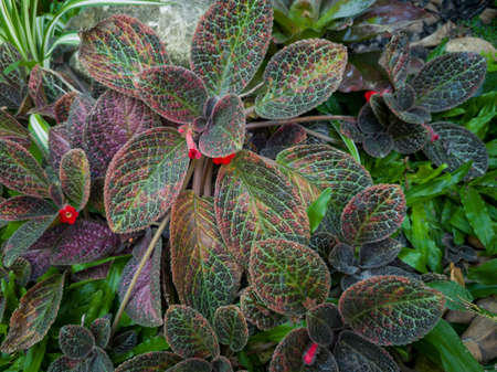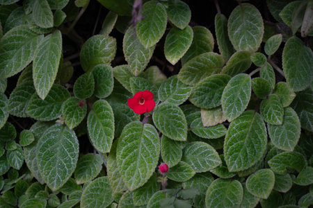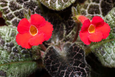 Episcia Cupreata beautiful red flower with texture of green leaves