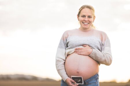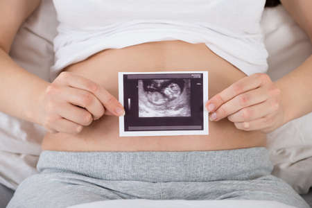 Pregnant woman with sonogram image