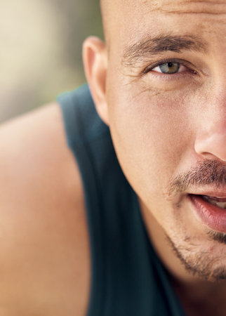 Discipline is the bridge between goals and accomplishment. Closeup shot of a man out for a run.