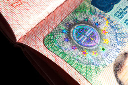 Visa stamp travel passport immigration macro emigration