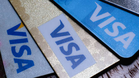 New-York , USA - June 4 , 2020: Using credit cards from visa or maestro system close up view
