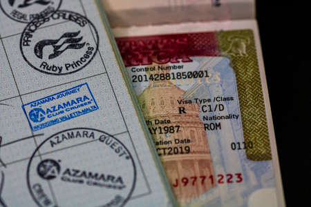 Detail of seaman discharge book and passport with C1/D US visa. Bucharest, Romania, 2021