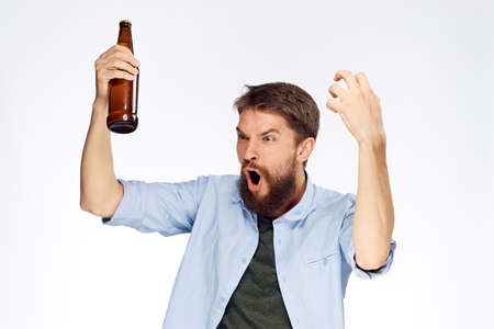 drunk man drinking beer alcohol emotion light background