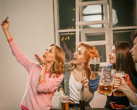 Friends having fun while drinking beer together.