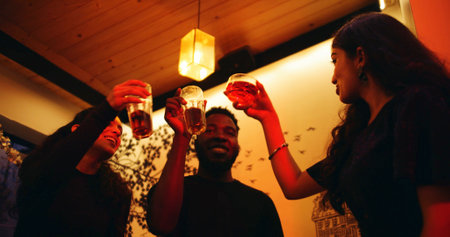 Have a drink on us. Cropped shot of a group of friends drinking and having fun at a party.