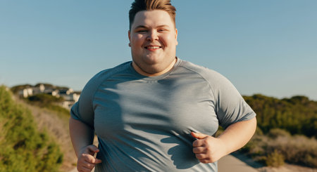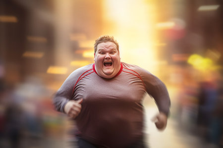 Generative AI Image of Fat Man with Happy Expression Running on the Street