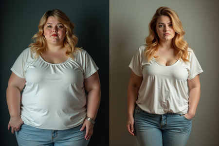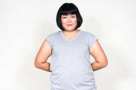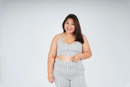 black and white picture style for Close-up of fat woman on white . Concept for obesity issue, diet of food for health.