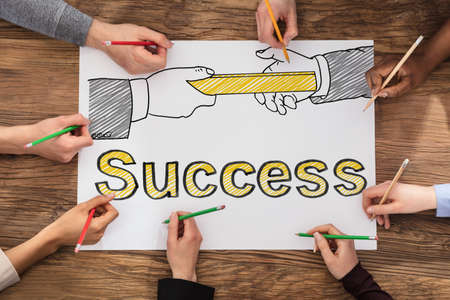 Hands Drawing Business Success Concept On Paper