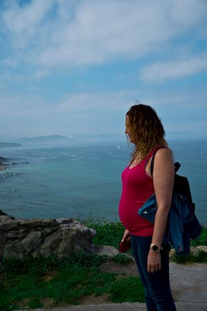 pregnant young woman posing by the sea