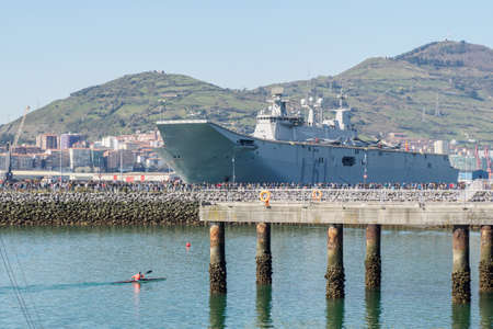 BILBAO, SPAIN - MARCH / 23/2019. The aircraft carrier of the Spanish Navy Juan Carlos I in the port of Bilbao, open day to visit the ship.