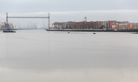 PORTUGALETE,SPAIN-JANUARY 10,2017: City view, estuary od Bilbao and Vizcaya bridge ,Basque Country.