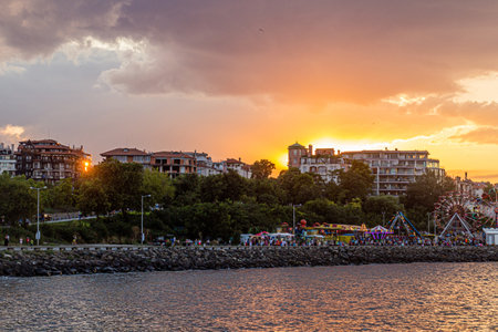 panorama of Getxo promenade at twilight