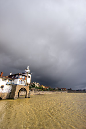 Getxo seafront and the Arriluze lighthouse with stormy weather