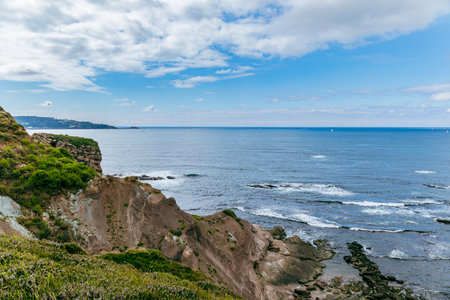 A calm and peaceful coastal cliff with a rocky edge and a gentle breeze