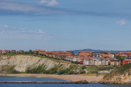The beautiful shot of the buildings on the hills near The Sopelana beach in Vizcaya, Spain