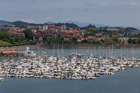 Gijon cityscape. Yatchs in marina port of Gijon, Asturias, Spain.