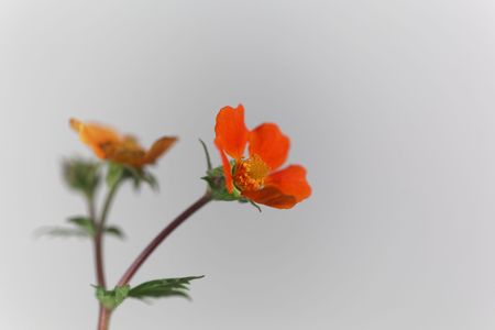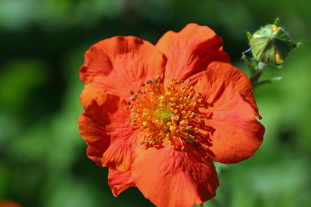 Flower of a dwarf orange avens, Geum coccineum.
