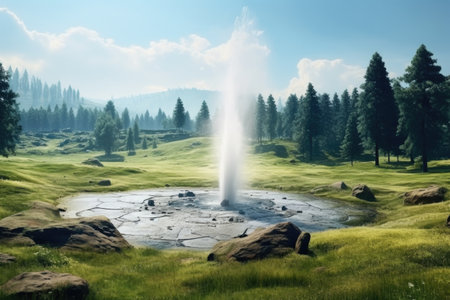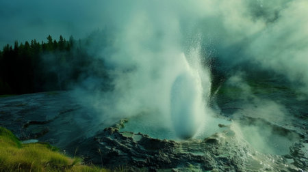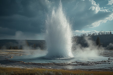 Powerful geyser eruption in natural landscape