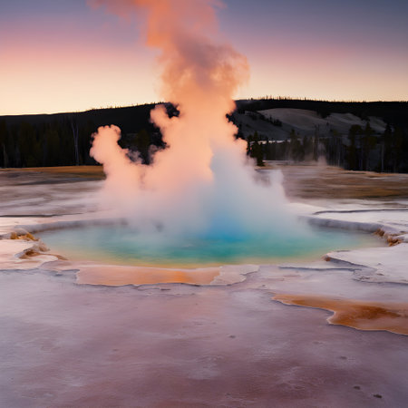 Geysers at Dusk: A Symphony of Color in Yellowstone